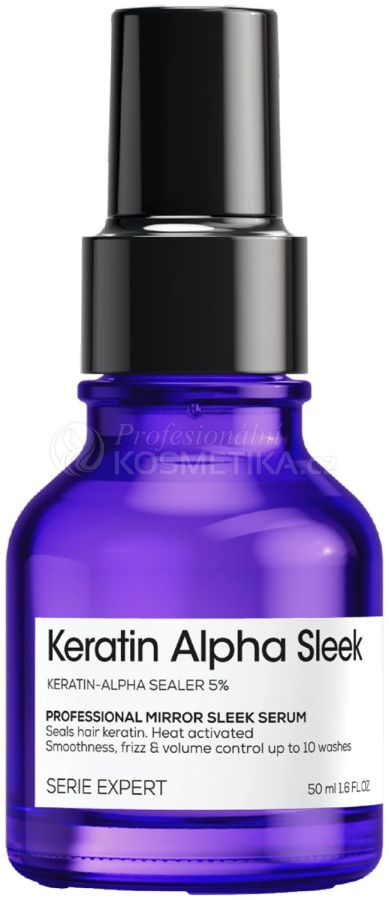 Vyhlazující sérum Keratin Alpha Sleek od L’Oréal Professionnel s 5% obsahem Keratin Sealer. Pomáhá uzavírat keratinovou strukturu uvnitř vlasu pro dlouhotrvající uhlazení s kontrolou krepatění a objemu po dobu až 10 umytí.* *instrumentální testy. Pomáhá uzavírat keratin uvnitř vlasu pro dlouhotrvající výsledky. Pomáhá uhlazovat vlasy až na 10 umytí.* Pomáhá kontrolovat krepatění a nežádoucí objem vlasů po dobu až 10 umytí.* Pomáhá chránit proti vlhkosti.* Termoochrana.* *Instrumentální testy.