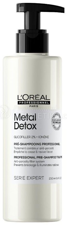 Antiporézní¹ technologie pečuje o vlasy, když jsou nejnáchylnější na poškození vodou: před použitím šamponu. Obohacené o 2 % Glicofilleru, aktivní látky s dvojím účinkem na povrchu i ve vlasovém jádru, která redukuje absorpci kovů obsažených ve vodě:- na povrchu: obaluje vlasové vlákno a dokáže vyplnit až 1 milion mikro poškození vlasu během 1 minuty,- uvnitř vlákna: proniká do vlasu a vyplňuje jej až do vlasového jádra. Nová předšamponová péče patří do produktové řady Metal Detox a je součástí plnohodnotného protokolu zabraňujícího lámání vlasů a nežádoucí změny barvy.