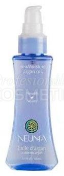 Olej Neuma neuMoisture Argan Oil nabízí péči pro všechny typy vlasů. Složení s arganovým olejem dodává vlasům výživu, posiluje je, oživuje, omezuje krepatění a poskytuje viditelné ozdravení a lesk. V kombinaci se zeleným čajem, který je silným antioxidantem, šípkovým olejem, yerba maté, který dodává živiny přímo do vlasového vlákna, a řebříčkem pomáhá vlasy opravit, uhlazuje vlasovou kutikulu, omezuje poletování vlasů a zajistí jim okamžitou poddajnost. Směs organických rostlinných výtažků Phyto UV Shield vytváří ochranný štít před UVA a UVB zářením. Ultra lehká, čirá konzistence oleje se rychle vstřebává a nezanechává mastný film. Vůně oleje získaná z esenciálních olejů z levandule, mandarinky a vanilky poskytne skutečný aromaterapeutický zážitek.