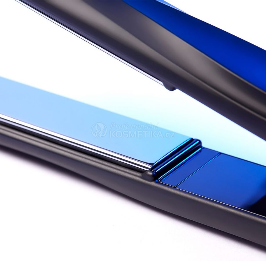 Luxusní žehlička s digitálním ovládáním s modře neonovými prvky.
