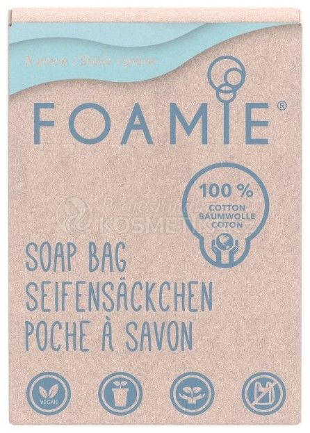 Bavlněný sáček na tuhé produkty Foamie. Poskytuje masážní a exfoliační efekt. Použití: Naplňte sáček zbytky produktů Foamie. Napěňte pod tekoucí vodou a jemně masírujte. Po použití důkladně opláchněte, zavěste na šňůrku a nechte vyschnout.