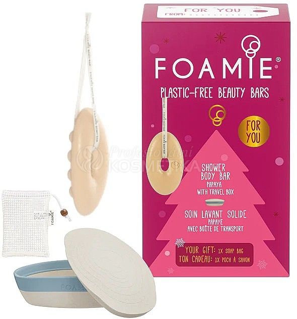 Foamie Shower Body Bar Gift Set - Tuhá tělová péče 80 g + cestovní pouzdro 1 ks + sáček na mýdlo 1 ks Dárková sada