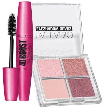 Palladio Vánoční Set - Řasenka černá + oční stíny Dárková sada