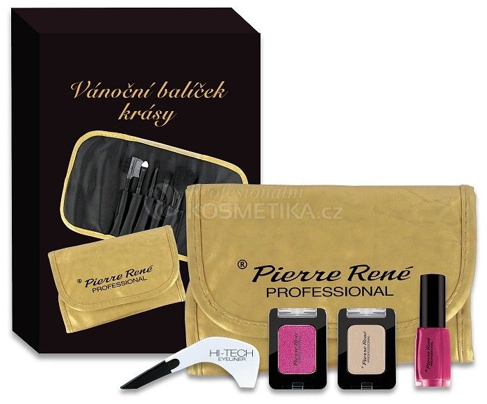 Pierre René Vánoční balíček krásy č.44 - Oční linky + Oční stíny + Lak na nehty + Zlaté pouzdro se štětci Dárková sada