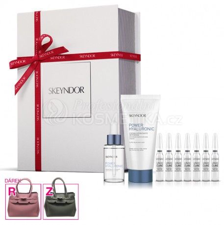 Skeyndor Power Hyaluronic Vánoční sada - Hydratační emulze pro suchou pleť 50 ml + hydratační booster 30 ml + ampule Uniqcure obnovující peeling + kabelka Dárková sada