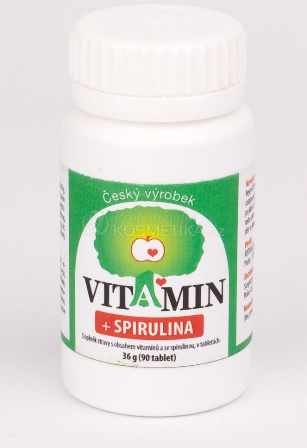 Tablety obsahují 27 vitaminů, minerálních látek a stopových prvků vázaných na mořskou řasu Spirulinu,