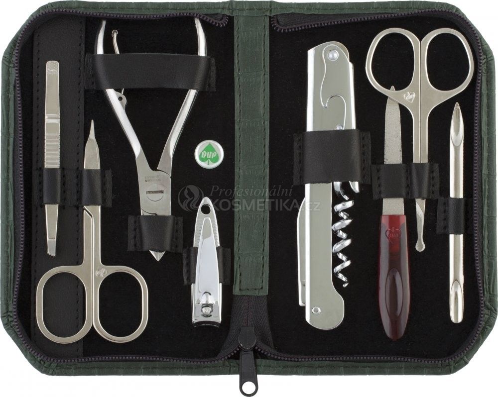 - Pánská manikúra vyrobená z kvalitní tm. zelené koženky s dozénem kroko obsahuje manikúrní náčiní značky DUP a kleště Solingen.