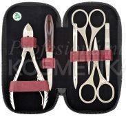 Elegantní manikúrní set 6-dílný, v mramorovobordové kožence. Uzavírá se na zip, hodí se do kabelky každé ženy. Je naplněn manikúrním náčiním značky DUP.