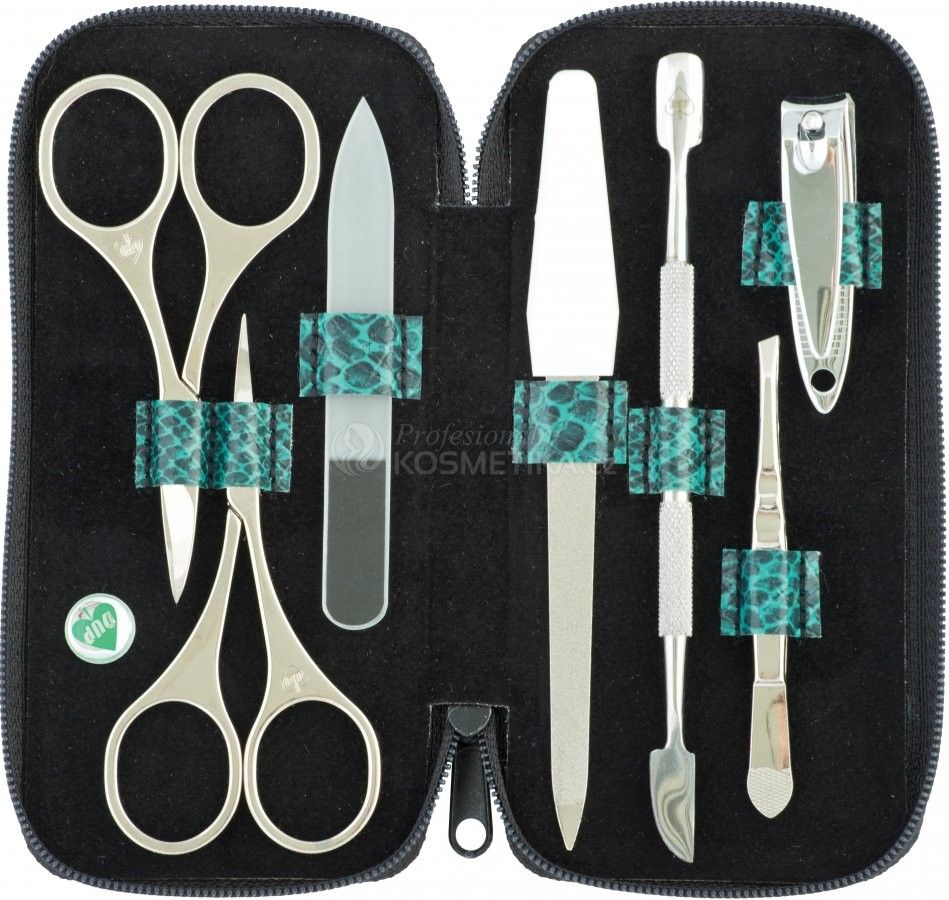 Pouzdro 7-dílného manikúrního setu je vyrobeno z koženky-imitace krokodýl. Uzavírá se na zip. Vybavení manikúry značky DUP potěší každou ženu i dívku. ,Rozměry: 14,5 x 7,5 x 2 cm.