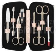 Luxusní manikúrní sada 8-dílná, vyrobena ze zlatavobronzové koženky s dezénem.