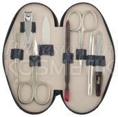 Luxusní manikúrní sada 8-dílná tm. modrá kožená se vzorem