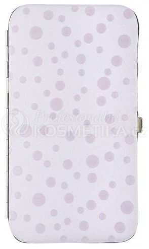 Elegantní manikúra v rámečku pro každou ženu, materiál nylon s plastickým vzorem koleček v sv. lila barvě, vnitřní poutka kůže, obsahuje náčiní Solingen a DUP. Rozměr:15 x 8,5 x 1,5 cm