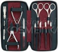 Plně vybavená 11-dílná manikúrní sada je vyrobena z černé koženky.