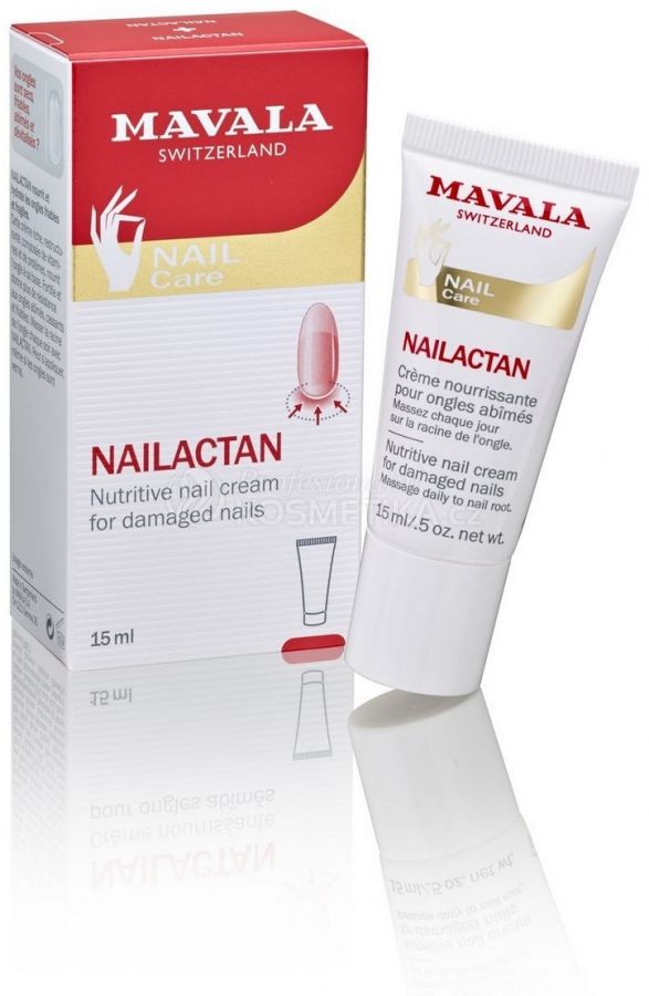 Povrch nehtu tvoří vrstvy stlačených proteinových buněk. Spojují je přírodní oleje a vlhkost, které dodávají vrstvám výživu. Nejcitlivější vrstvou nehtu je vrchní vrstva, která je vystavovaná působení slunce, chladu, účinkům chlóru a dalších čisticích prostředků. Pro ochranu nehtů před vysušením a zlepšení jejich pružnosti vyvinuly laboratoře Mavala výživný krém na nehty, který obsahuje biologický komplex Nailactan. Aktivní látky: biologický komplex Nailactan (esenciální aminokyseliny glycin, tyroxin), lipidy a vitamíny - představuje účinné řešení především pro suché nehty.